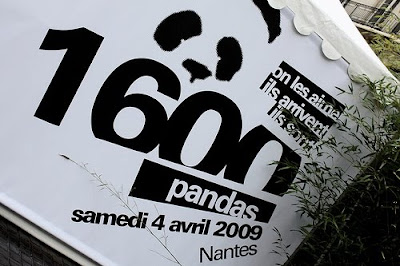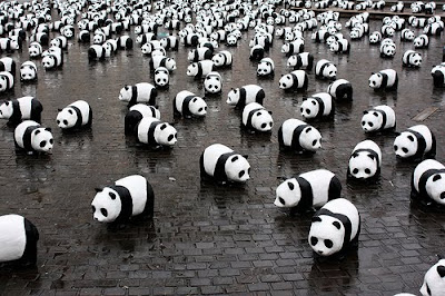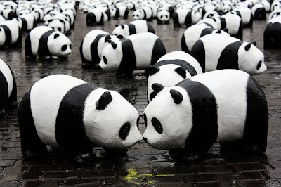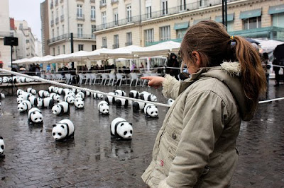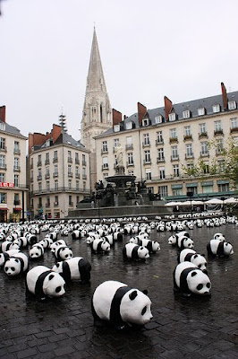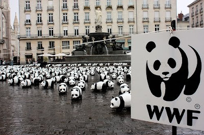 Essa ação da WWF é meio antiga mas acho que vale a pena compartilhar! 1.600 estátuas de pandas (número exato de animais vivos dessa espécie no mundo) foram colocados em Nante, na França, em frente a Câmara Municipal de Paris, para alertar a população em geral e autoridades pela preservação do meio ambiente e pela conservação da espécie em extinção. Os animais vêm sentindo um acelerado processo de extinção, cerca de 1000 vezes mais do que o normal. As estátuas foram produzidas em tamanho real e com materiais recicláveis que não fazem mal a natureza.