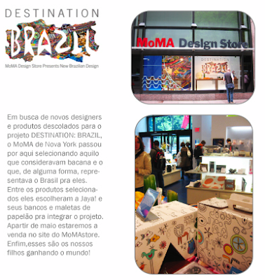 Update: Em 2008 o MoMA de NY esteve no Brasil a procura de novos designers brasileiros para o Projeto DESTINATION BRAZIL. Entre eles escolheram o banco ZOO e a Monstroleta, produtos da Jaya! que foram vendidos nas lojas no museu e fizeram um super sucesso lá fora. Legal, não?