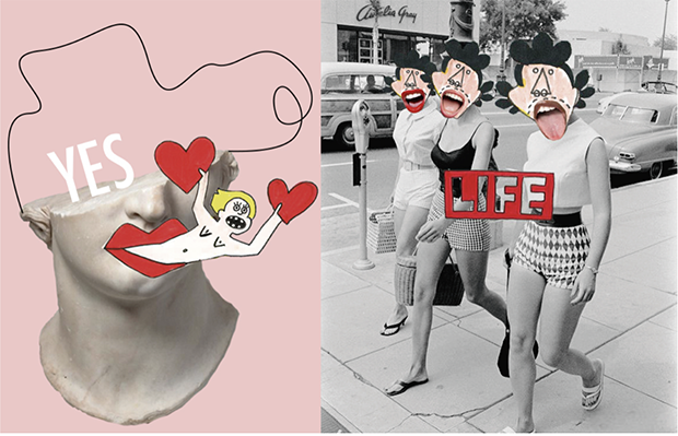 O resultado são peças sempre bem humoradas, coloridas e com uma identidade única no traçado e mistura de técnicas.