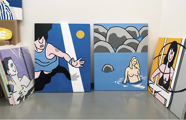 O resultado são peças sempre bem humoradas, coloridas e com uma identidade única no traçado e mistura de técnicas.