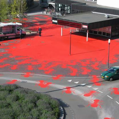 Cerca de 500 formigas vermelhas foram espalhadas pelo artista Henk Hofstra na cidade de Drachten, na Holanda. A maioria se concentrava em frente ao teatro De Lawei, presente do artista aos 50 anos de existência do local.