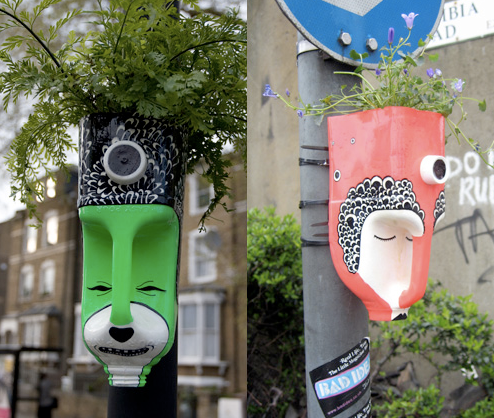 Anna Garforth se define como uma “Guerilla gardner”, “Urban land artist” ou “Green grafitti extrodinaire”. Seja o nome que preferir, a verdade é que Anna é uma artista sustentável e talentosa, que reaproveita materiais usados (como restos de sacos plásticos, folhas caidas e embalagens) de uma maneira diferente, fazendo intervenções em Londres – cidade onde mora.