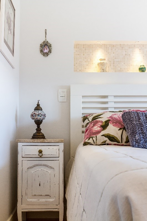 No dormitório, é primordial uma distância adequada ao lado da cama. Além de incluir o móvel lateral, o morador pode caminhar sem a preocupação de esbarrar no espaço que compreende a parede e cama | Foto: Vitor Fontes e Dennis Fidalgo