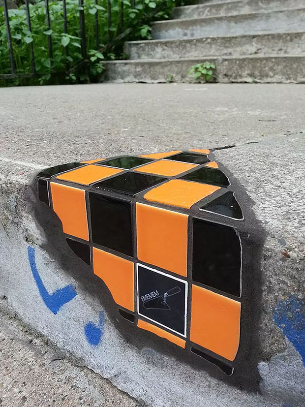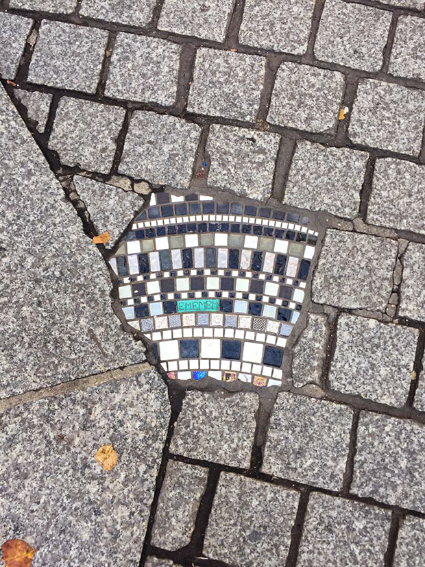 O artista de rua Ememem—conhecido por seu trabalho em Lyon, França, sua cidade natal, como “cirurgião de calçada”—tem como missão “curar as fraturas do asfalto” transformando-as com mosaicos coloridos através da arte.