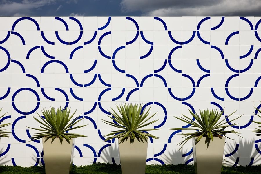 Painel de azulejos, Centro de Formação e Aperfeiçoamento da Câmara dos Deputados – CEFOR, 2003. Foto: Edgar César Filho. Via: Fundathos