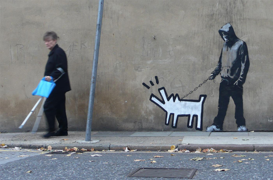 >A mais nova do Banksy. O cachorro me lembra Keith Haring… não é a toa o título dado a obra.