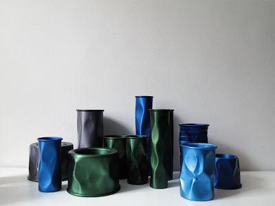 Inspirado nas louças usadas em comunidades pobres, o designer Brunno Jahara, lançou uma coleção de vasos, bowls, bandejas e luminárias com o título Batucada. A linha é feita em alumínio anodizado (processo que deixa o alumínio 30% mais resistente que o aço, além de dar cor ao material) e totalmente reciclável, já que o Brasil é um dos países que mais recicla o material, graças ao catadores em todas as cidades. Achei lindas as cores e a estética que o material fica.