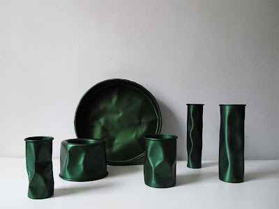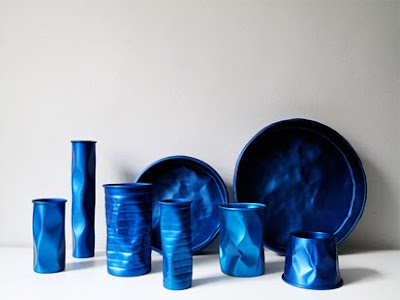 Inspirado nas louças usadas em comunidades pobres, o designer Brunno Jahara, lançou uma coleção de vasos, bowls, bandejas e luminárias com o título Batucada. A linha é feita em alumínio anodizado (processo que deixa o alumínio 30% mais resistente que o aço, além de dar cor ao material) e totalmente reciclável, já que o Brasil é um dos países que mais recicla o material, graças ao catadores em todas as cidades. Achei lindas as cores e a estética que o material fica.