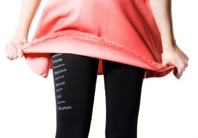 Calças que na altura da coxa, revelam o estado de espírito do momento: Recatada, discreta, sutil, quieta, sensual, caprichosa, sedutora, provocadora, atrevida, descarada, guerrera, fatal. Quem vai usar uma dessas? rsrs. A venda por 16 Euros. Divirta-se!
