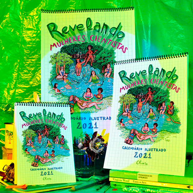 “Revelando Mulheres Cientistas” criado por Chiara Cabral traz 17 ilustrações que tem o intuito de divulgar o trabalho de mulheres e suas áreas do conhecimento. Em cada mês redescobrimos a presença da ciência em nossas vidas com foco nas questões ambientais o material conta com QRcodes que redirecionam para conteúdos e referências de cada mulher ilustrada. O calendário tem duas opções, o download gratuito nos formatos para impressão ou tela de fundo (wallpapers) e, também está disponível para compra, assim quem paga ajuda a financiar o download. Para baixar, acesse o arquivo aqui.