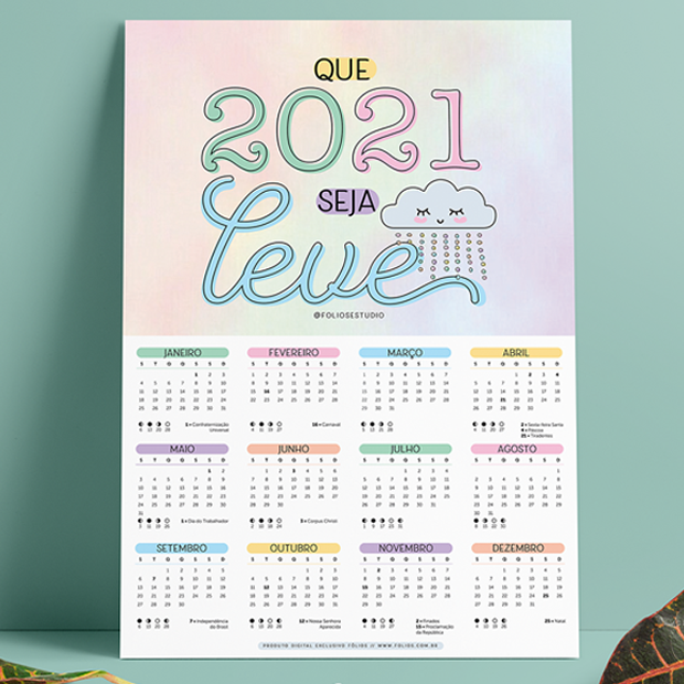 O Estúdio Criativo Fólios criou um calendário ilustrado 2021 bem bonitinho: em uma folha só, todas as datas do ano estão dispostas, como um pôster! Veja aqui e baixe gratuitamente.
