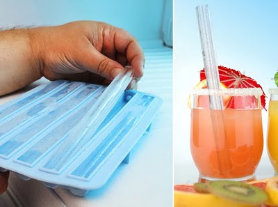 Formas de gelo em diversos formatos, a gente acha uma mais legal que a outra. Mas essa, além de ser legal é super útil! Olha que bacana: um canudo de gelo! Dá pra imaginar o tanto de drink que dá pra decorar, dá pra colocar o canudo dentro de garrafas, em copos, etc. Adorei a ideia!