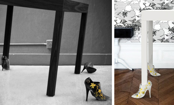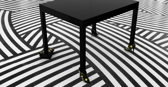 >Uma mesa sem graça? #Not! A decoração do sapato ajuda qualquer móvel sem graça a renovar qualquer ambiente! Divertido, o design é de Harc Lee.Via Like Cool.