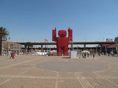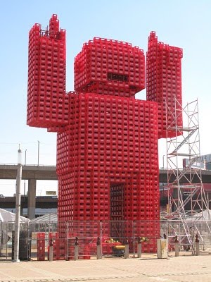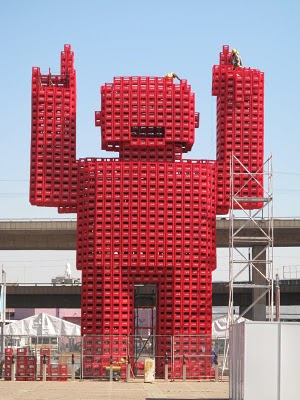Parece coisa do Japão, mas a instalação com 2.500 engradados de Coca-Cola que mede 16,5 metros está em Joanesburgo por causa da Copa do Mundo. Quando o Coke Man for desmontado, os engradados poderão ser reutilizados ou reciclados. Legal!