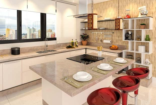 Importante: não é recomendável uma cozinha com ilha central em apartamentos pequenos, pois, geralmente, não há espaço suficiente para tal.