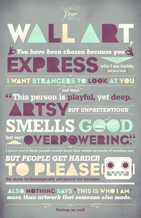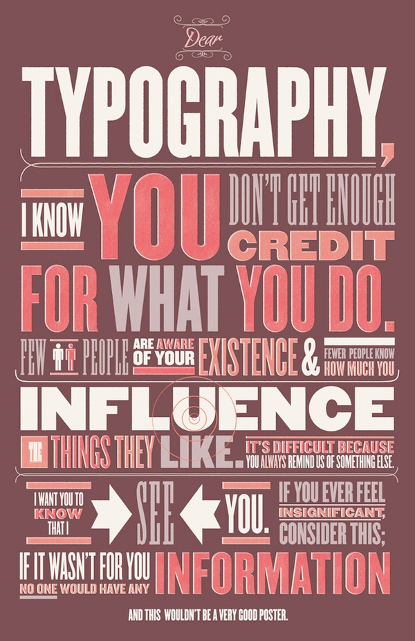 >Dear Typography, eu sei que não é todo mundo que dá bola pra você… mas os posters tão super legais! Putz, tem um melhor que o outro lá no VISUAL-GRAPHIC.Via Fonda LaShay.