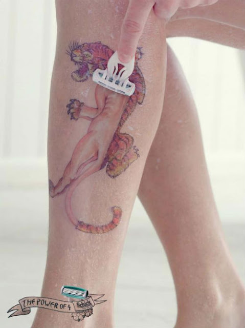 A agência norte-americana JWT achou um modo bem criativo de mostrar como as lâminas quádruplas da empresa Schick são bem afiadas, capazes de garantir um barbear perfeito – ou uma depilação realmente efetiva. Além de liquidar com os pelos do seu corpo, o produto raspa, de quebra, fios imaginários, removendo até os cabelos de… tatuagens! A lúdica campanha, lançada há uns anos, conseguiu – no mínimo – sair do lugar-comum, né? We like it!
