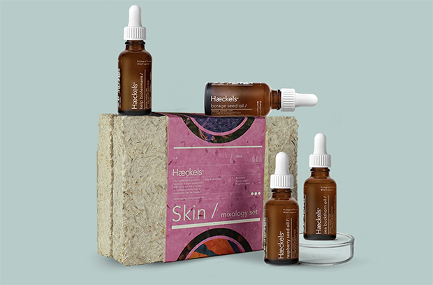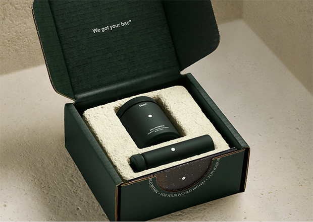 As embalagens biocontribuidoras também estão ganhando força. A marca britânica de bem-estar Haeckels traz caixas feitas a partir de micélio, material que forma o sistema radicular dos cogumelos, combinando-o com serragem, linho e cascas de cânhamo, enquanto a empresa de bebidas sem álcool Seedlip lançou embalagens de micélio compostáveis em setembro de 2020.