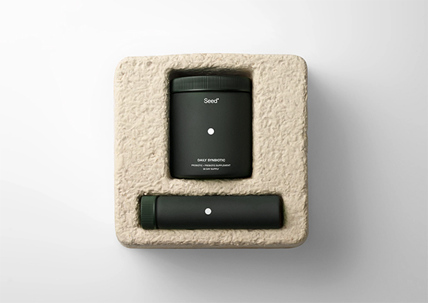 A Seed, marca de pré e probióticos, também produziu bandejas de micélio que protegem os frascos de vidro recicláveis da marca. Suas embalagens se decompõem naturalmente no solo dentro de 30 dias. O preenchimento foi feito para proteger seus produtos em trânsito e é feito também combinando o material com amido de milho não transgênico.