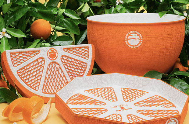 A Krill Design, um estúdio italiano fundado em 2018, vem desenvolvendo uma série de produtos de design circular e biomateriais. Após um processo de pesquisa, os profissionais encontraram sucesso na mistura de cascas de laranja secas moídas com uma base biopolimérica feita de amido vegetal para criar um processo de impressão 3D. A partir disso criam diversos objetos como caixas, bandejas, abajures.