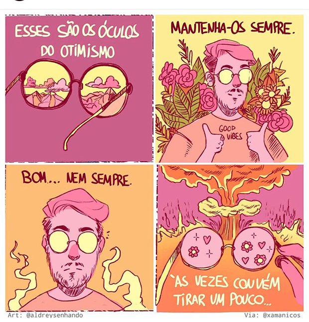 POSITIVIDADE TÓXICA: Estamos envolvidos em uma cultura rígida que valoriza a positividade. A visão convencional das coisas como boa ou ruim, positiva ou negativa, é rígida. E a rigidez diante da complexidade é tóxica. Arte: @aldreysenhando, via @xamanicos.