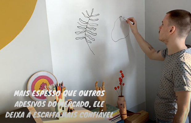 Apenas um cuidado: O adesivo funciona sobre qualquer pintura de tinta acrílica desde que tenha sido aplicado o fundo adequado, pois infiltrações e umidade podem danificar a película. Caso a superfície esteja irregular ou com texturas, isso também dificultará a escrita e a limpeza.