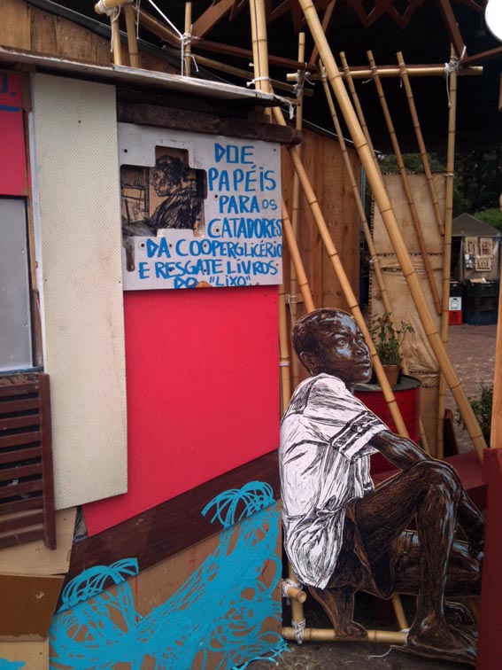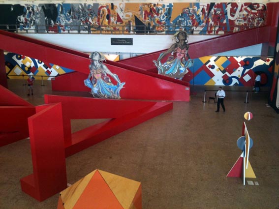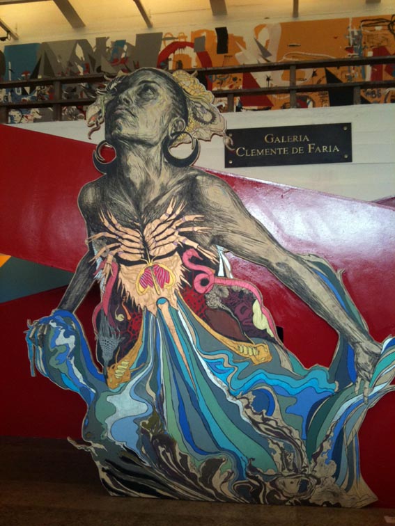 Esse fim de semana tive a chance de dar um pulo no MASP para conferir a exposição #DEDENTROEDEFORA com 8 artistas estrangeiros que fizeram intervenções com pinturas, murais, esculturas, colagens, objetos, vídeos. Muitos que participam da expo, já foram citados aqui no blog pelas suas grandes ideias como JR, Space Invader, Tec, além de Remed, Point, Defi, Chu, Swoon e Bijari. Os trabalhos colaborativos, criados especialmente para a exposição, ocupam o subsolo do museu e as imediações do Masp. As obras conversam entre si. Vale a pena também parar para dar uma olhada na arquitetura da grande modernista Lina Bo Bardi, criadora da sede do museu. No fim, a exposição vale muito a pena: pela estética bacana, por todas as cores e inspirações, além de ter me divertido muito.