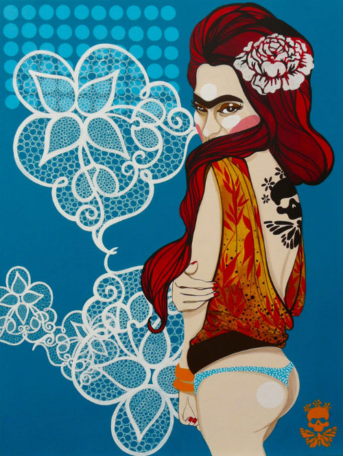 Criadas pela artista plástica Saramello, as obras misturam à revolucionária Frida elementos da cultura pop e da indústria cultural, mostrando como apenas algumas décadas podem transformar radicalmente conceitos e estilos. A forte personalidade de Kahlo, no entanto, aparece forte como sempre! Até selinho em Amy Winehouse ela decide dar…