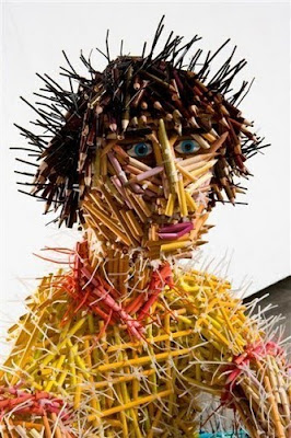 >É preciso olhar de perto para entender toda a graça das esculturas de Federico Uribe. À primeira vista, parecem comuns, mas são, na verdade, minuciosas montagens de objetos que nos cercam no dia a dia: lápis, cadarços, teclas de computador, alfinetes, cabos, moedas e até mesmo balas de revólver são objetos usados nas obras do artista colombiano. Legal, não? Via Mosca Branca.