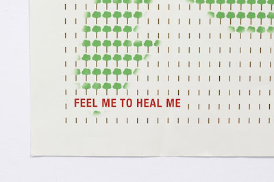 O poster de Kimberley Chan tem como conceito “Feel me to Heel me” com a mensagem de salvar a floresta Amazônica do desmatamento. Ao interagir com o cartaz, que possui uma tinta termosensível, o calor das mãos revelam as árvores. Adorei!