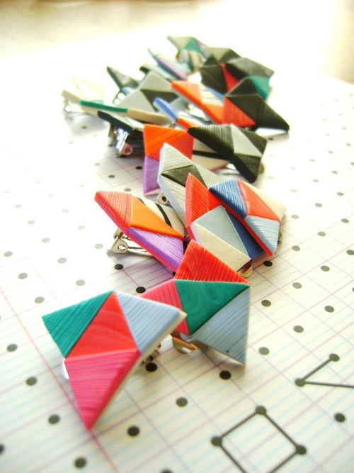 Os acessórios também precisam ter mais vida. Eles podem ter cores, serem geométricos e com um design bem diferentão. Gostei demais do trabalho da Eva, de Atenas – Grécia, que comanda a loja NoMilk Today no Etsy. Uma pena que todas suas peças estão vendidas. =(