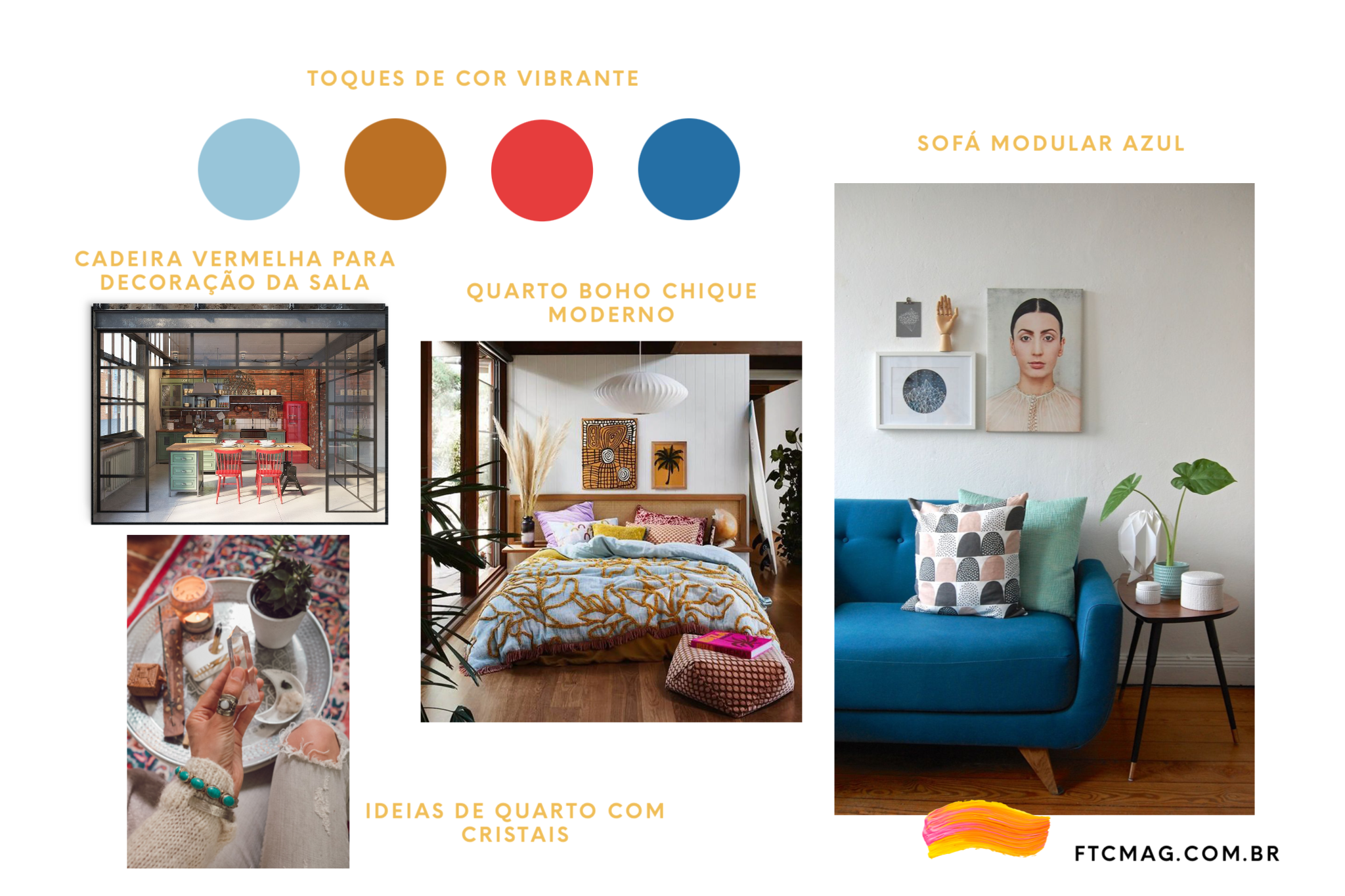 Os millennials estão procurando toques de cor vibrante para a decoração da casa, como “cadeira vermelha para decoração da sala” (aumento de 32x) e “sofá modular azul para sala” (aumento de 24x). E também querem ideias para criar um quarto mais relaxante, com buscas como “quarto boho chique moderno” (aumento de 20x) e “ideias de quarto com cristais“.