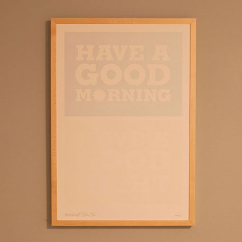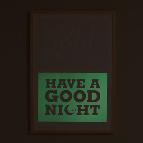 Olha que legal essa edição do poster Morning/Good Night que fica claro de dia e brilha no escuro a noite! Ótima ideia.Via Swiss Miss.