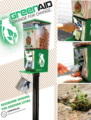 >Greenaid seedbomb: uma vending machine que ao invés de produtos para consumo, vende uma mistura de sementes que podem ser jogadas ou plantadas em espaços sem verde. Além do conceito ser super bacana, as bombas trazem uma contribuição para tornar as cidades mais vivas e bonitas!Via NotCot.