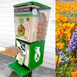 >Greenaid seedbomb: uma vending machine que ao invés de produtos para consumo, vende uma mistura de sementes que podem ser jogadas ou plantadas em espaços sem verde. Além do conceito ser super bacana, as bombas trazem uma contribuição para tornar as cidades mais vivas e bonitas!Via NotCot.