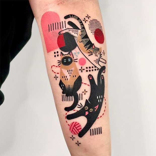 Os desenhos que trazemos hoje misturam geometria, cores, criatividade, paciência, originalidade. A responsável é a tatuadora Hen Tattooer, do estúdio Moonblue.ink, localizado em Seul, na Coréia.