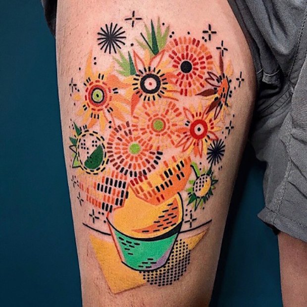 Em 2017, foi lançado o filme biográfico experimental animado do famoso artista holandês Vincent van Gogh. Essa tatuagem se refere ao estilo audiovisual peculiar do filme.
