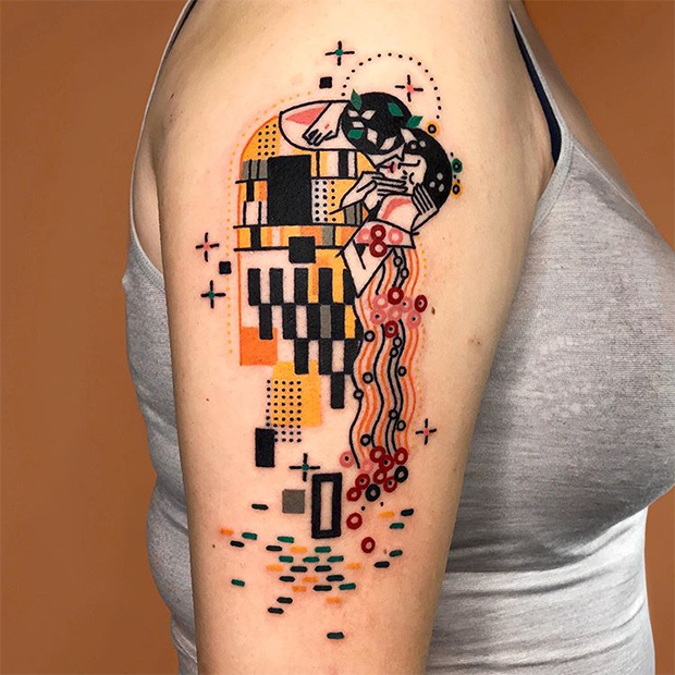 Uma bela e moderna versão da obra mais conhecida de Gustav Klimt, ‘O Beijo’.