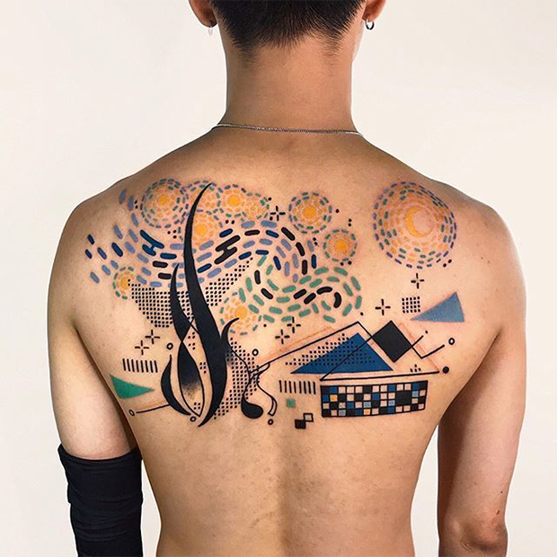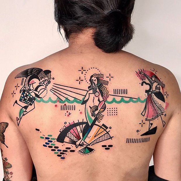Hen possui um trabalho diferente do qual estamos acostumados a ver. A artista incorpora imagens da história da arte, paisagens e outras coisas relacionadas à cultura oriental na pele, e até personagens reais e animados em estilo cubista. Selecionamos algumas imagens para você se inspirar: