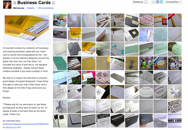 Hoje é dia de se inspirar no #ifollow com papel. Não sei, mas tenho mania por papel seja ele do jeito que for: cadernos, embalagens, cartões de visita, postais, revistas, livros, posters e mais. Muitos guardados como lembranças, referências. Quando vejo um site cheio de cartões de visita legais, não paro mais. Então, que tal se inspirar também com essas dicas?