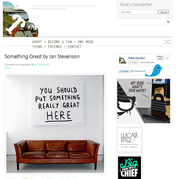 3) THINK BIG CHIEF: Vou dizer que esse é um dos blogs que mais curto atualmente. Lucas manda bem pra caramba nos posts.Veja por você mesmo: inspirações com foco em arte, design e moda.