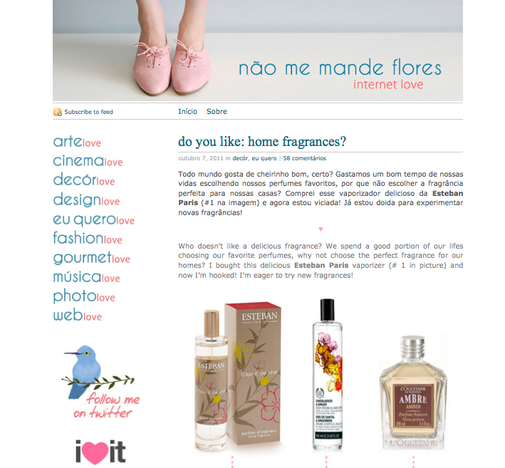 3) NÃO ME MANDE FLORES: Camila Faria é jornalista/redatora e escreve sobre arte. cinema. decór. design. eu quero. fashion. gourmet. música. photo. web. Internet love.