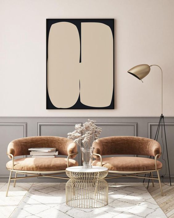 A arte na parede também é reduzida, sem espaço aqui para a famosa ‘parede da galeria’, mas apenas uma grande arte abstrata emoldurada ou talvez uma paisagem natural, isso é o suficiente para decorar o espaço de forma harmoniosa.