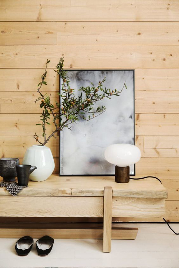 Na estética Japandi, as cores neutras e claras do estilo Scandi estão em equilíbrio com a paleta japonesa mais sustentada, enquanto o design elegante japonês é suavizado pela natureza eclética e rústica do estilo Scandi.