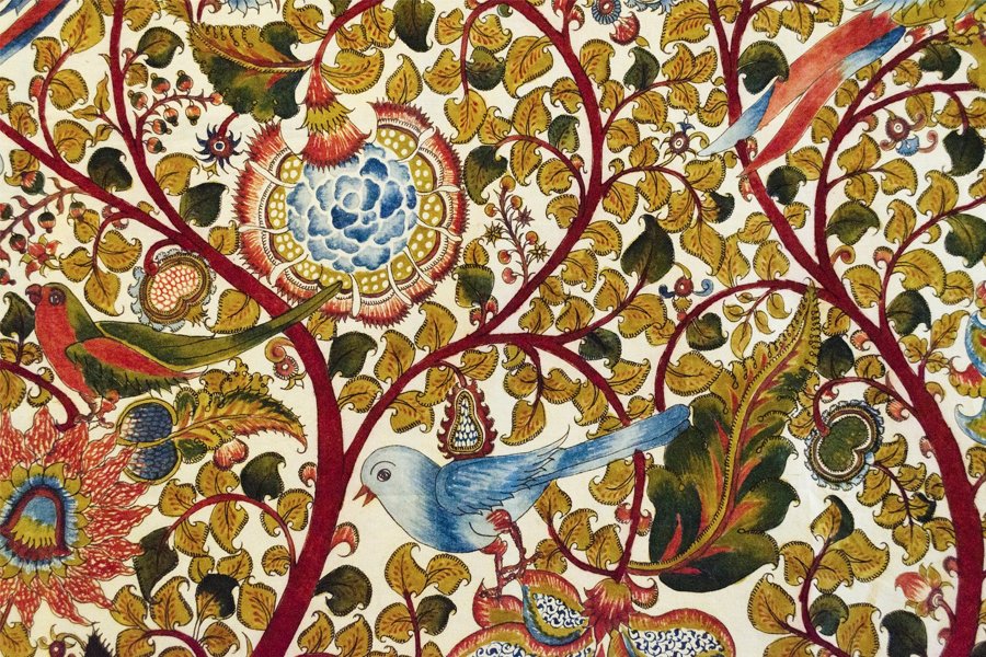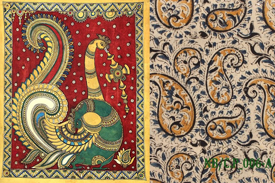 Kalamkari é uma técnica tradicional com resultados impressionantes feita em pintura e impressão em tecido. Cores naturais e estampas complexas são elementos centrais desta arte tradicional que pode também inspirar a decoração