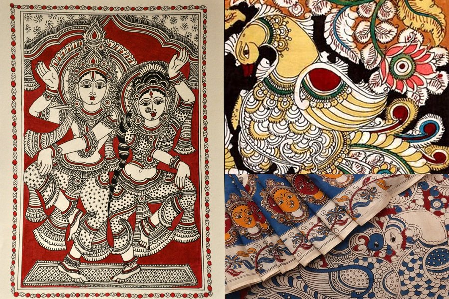 Antigamente, artistas mudavam-se das aldeias para contar aos moradores as histórias tradicionais da mitologia hindu. Ilustravam seus relatos usando telas pintadas no local com tintas extraídas de plantas. Artes como essas, hoje reconhecidas como painéis de Kalamkari são encontrados nos templos hindus e representam os episódios da mitologia tradicional do país.