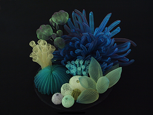 Seu trabalho reflete vários fenômenos da natureza que estimulam a nossa mente e sentidos; e eles podem ser naturais ou artificiais. De Kumamoto, Japão, mas morando em Massachusetts, nos EUA, Mariko Kusumoto ‘reorganiza’ pequenos habitantes do fundo do mar em uma nova apresentação que pode ser descrita como surreal, divertida, delicada e até mesmo inesperada. Isso porque suas esculturas são feitas em tecidos e as formas perfeitas de suas peças combinam a translucidez do material que usa com um movimento ondulado como se estivessem mesmo no fundo do mar.