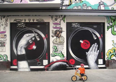Pois é, isso é graffiti. Inspirado nas personalidades da indústria pop e dos cinemas, o artista MTO faz esses trabalhos maravilhosos pelas ruas de Berlim. Seus temas e filmes são de super bom gosto: O Iluminado, Taxi Driver, O Silêncio dos Inocentes. Nem mesmo o Zé Pequeno escapou!