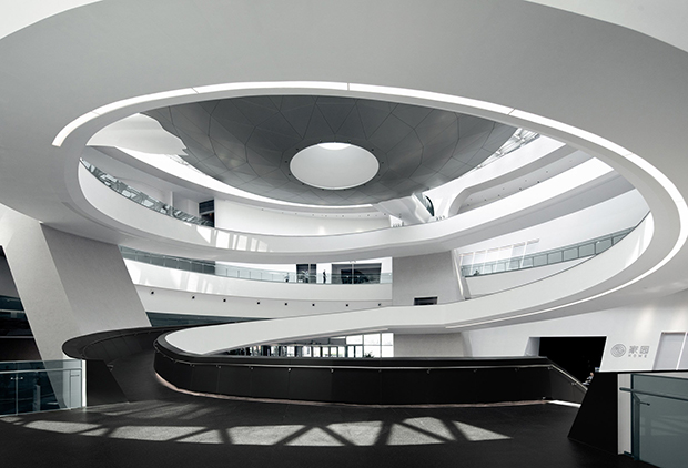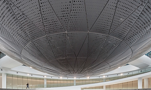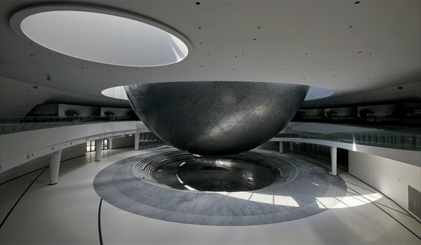 O planetário foi projetado para ter um impacto visual imediato.“Outro momento de impacto dentro do Museu de Astronomia de Xangai ocorre com a suspensão leve da esfera, gradualmente revelada à medida que se aproxima do átrio e desafia visualmente todo o senso de gravidade”, disse Wong.