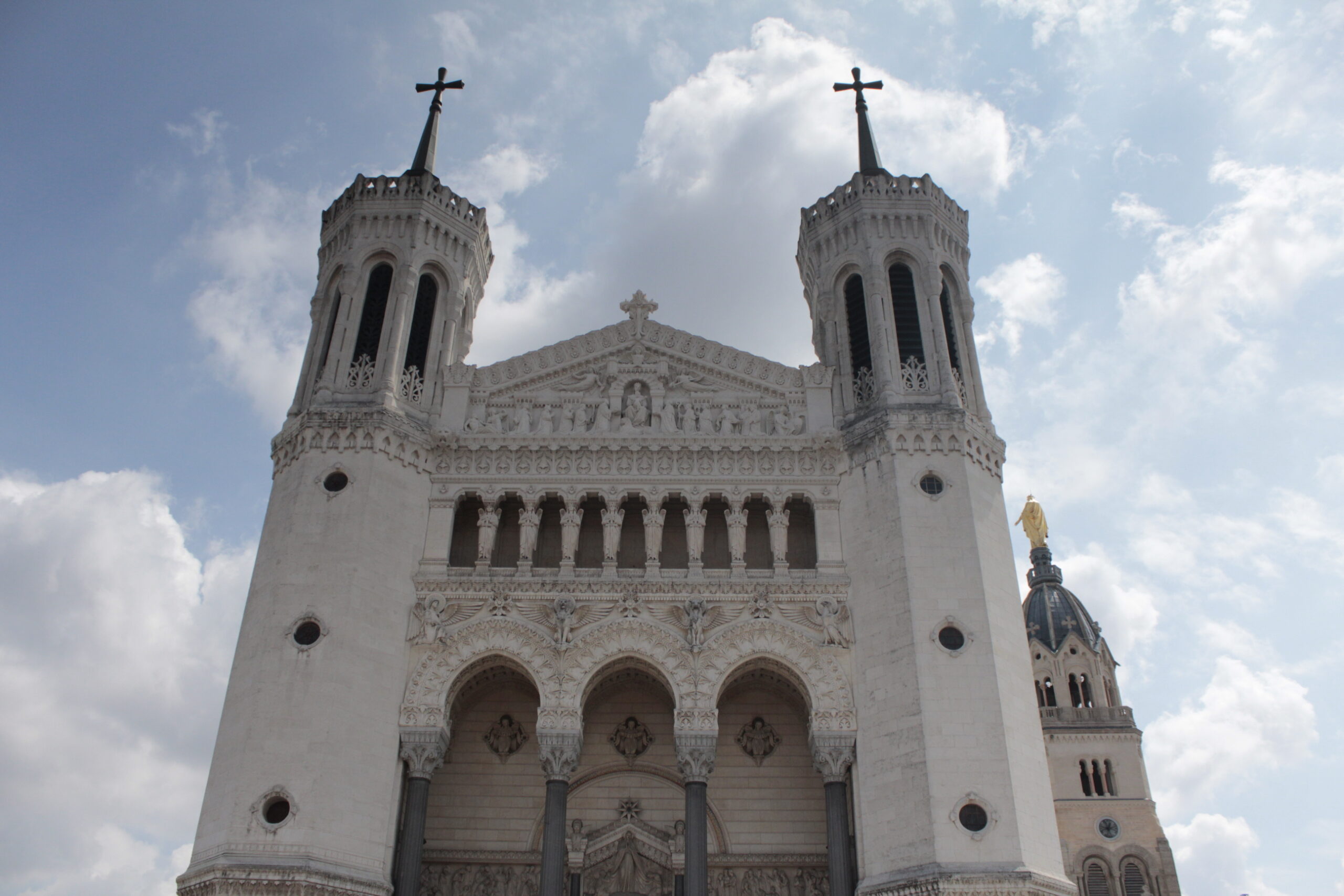 E por quê ela tem o ‘Fourvière’? A expressão em francês significa “Nossa Senhora de Fourvière”. Assim como aqui no Brasil temos Nossa Senhora Aparecida, Nossa Senhora do Carmo, Nossa Senhora de Fátima e assim por diante. Fourvière é o morro no qual a Igreja foi construída. A Igreja de Paris, de estilo arquitetônico gótico teve sua construção entre os anos 1163 até 1345. Já a de Lyon foi construída entre 1872 e 1884 em homenagem à Virgem Maria, e desde 1998 é considerada patrimônio cultural da Unesco.